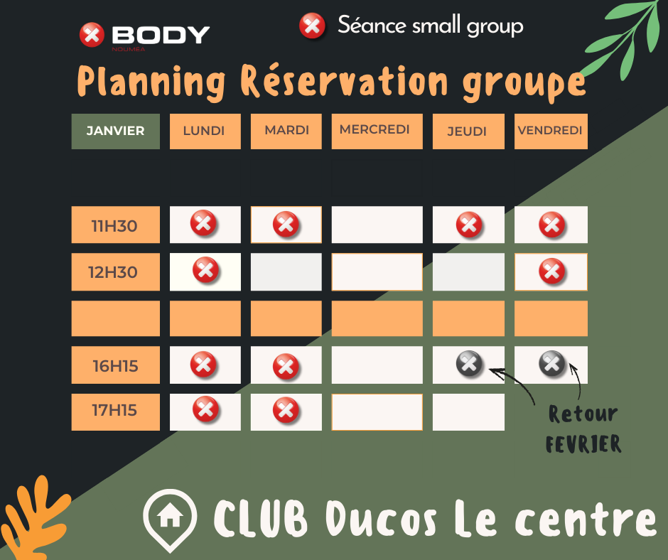 - Dans nos petits groupes, composés de 1 à 4 participants, vous bénéficierez d'un encadrement personnalisé par un coach. Chaque mois, notre programme évolue, offrant une variété de mouvements et de matériel, garantissant que chaque séance soit stimulante et différente.
