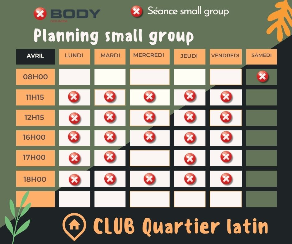 - Dans nos petits groupes, composés de 1 à 4 participants, vous bénéficierez d'un encadrement personnalisé par un coach. Chaque mois, notre programme évolue, offrant une variété de mouvements et de matériel, garantissant que chaque séance soit stimulante et différente.